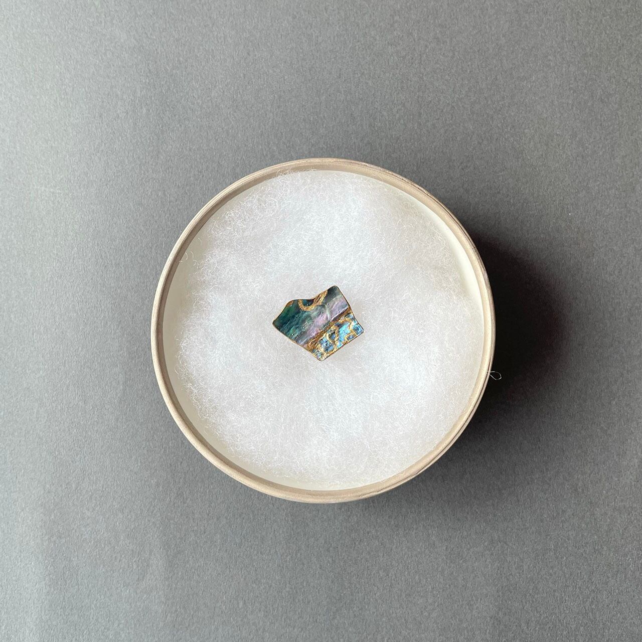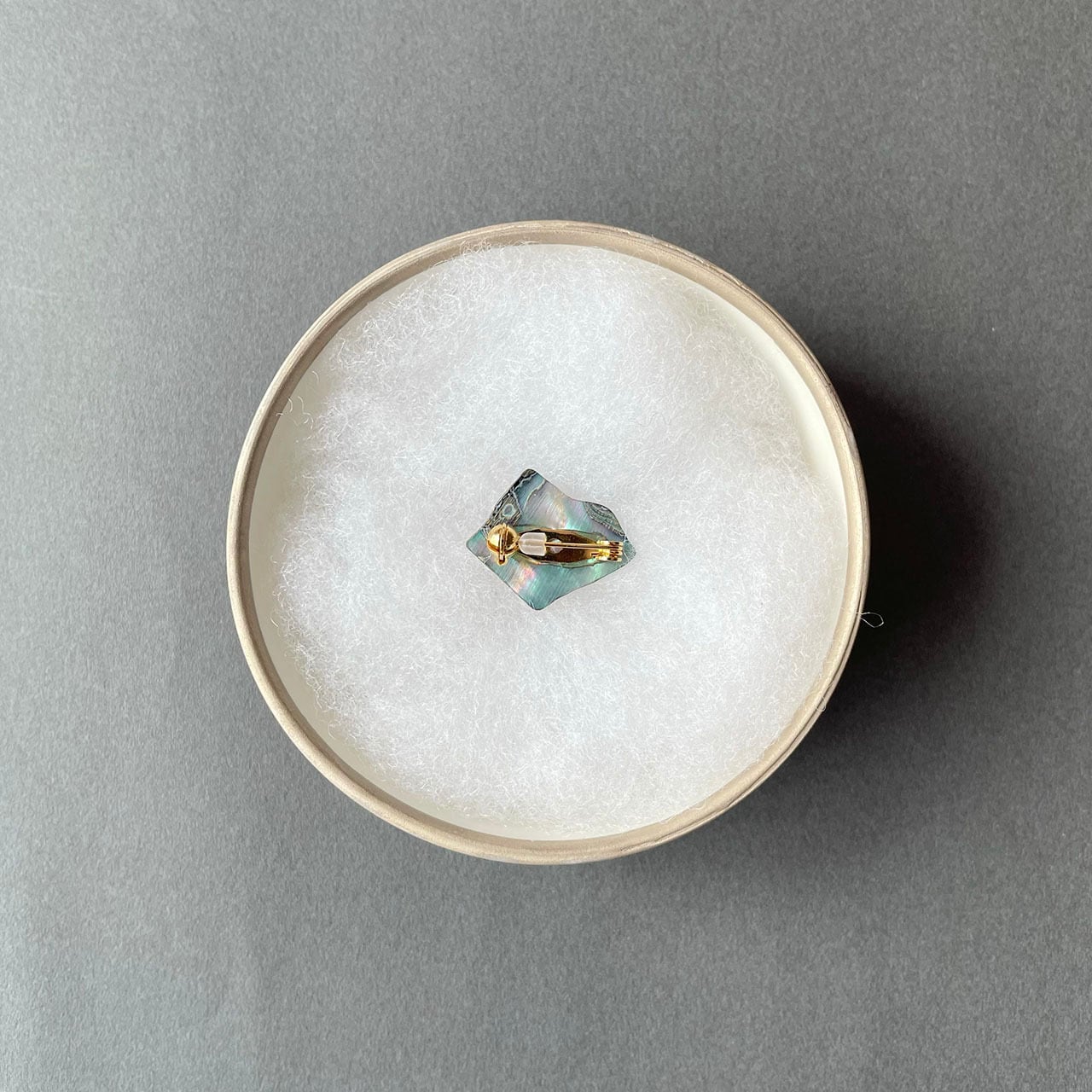 漆作家 佐々木響子さんの「アワビ貝蒔絵ブローチ」です。