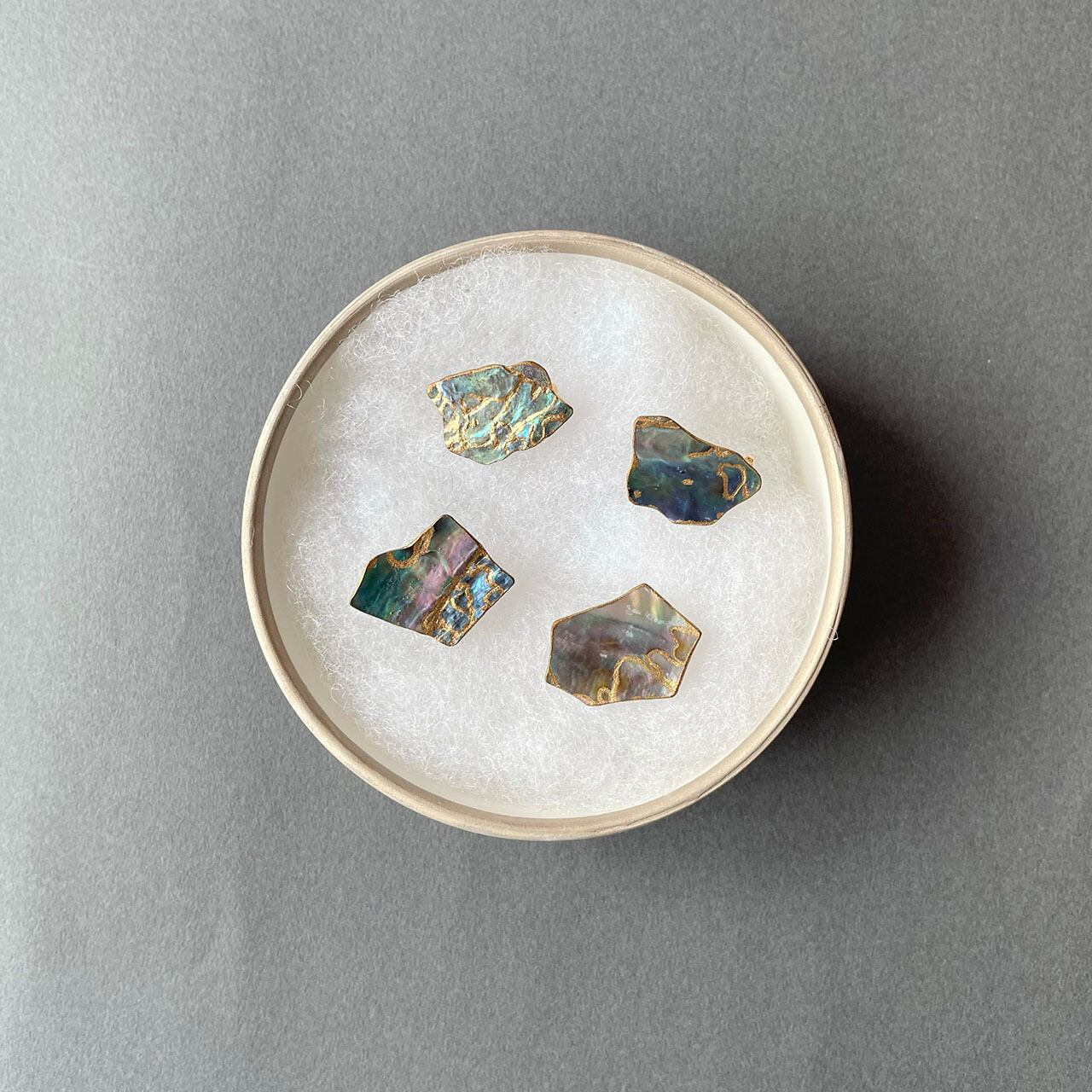 漆作家 佐々木響子さんの「アワビ貝蒔絵ブローチ」です。