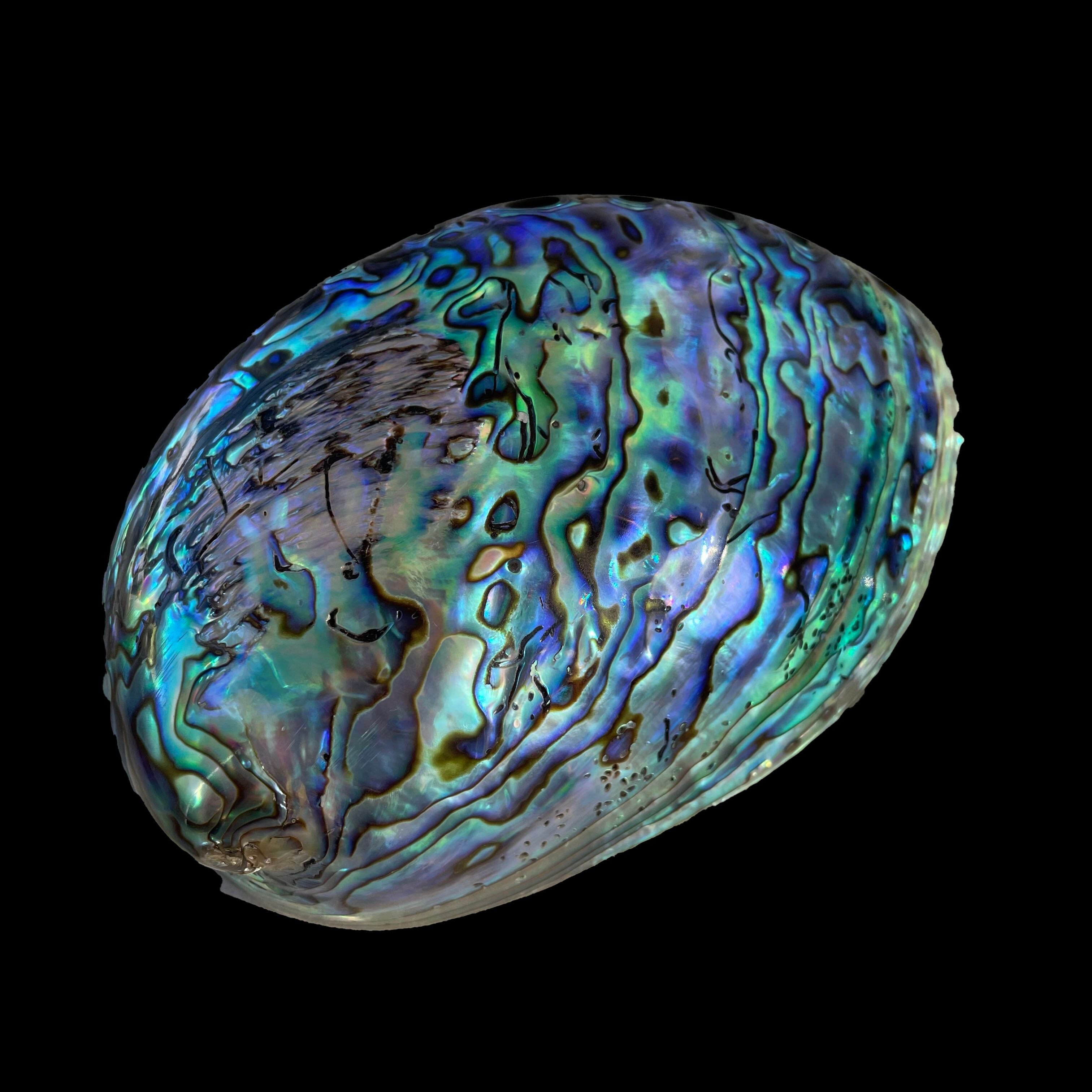 虹色に光るアワビ貝に漆器の加飾技法「蒔絵」を施したブローチです。